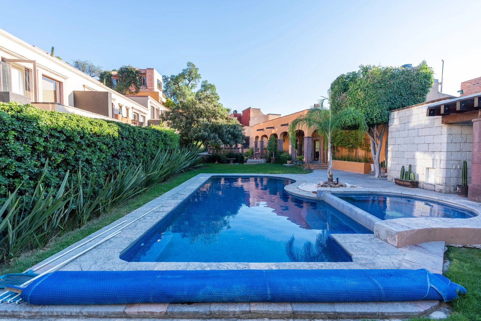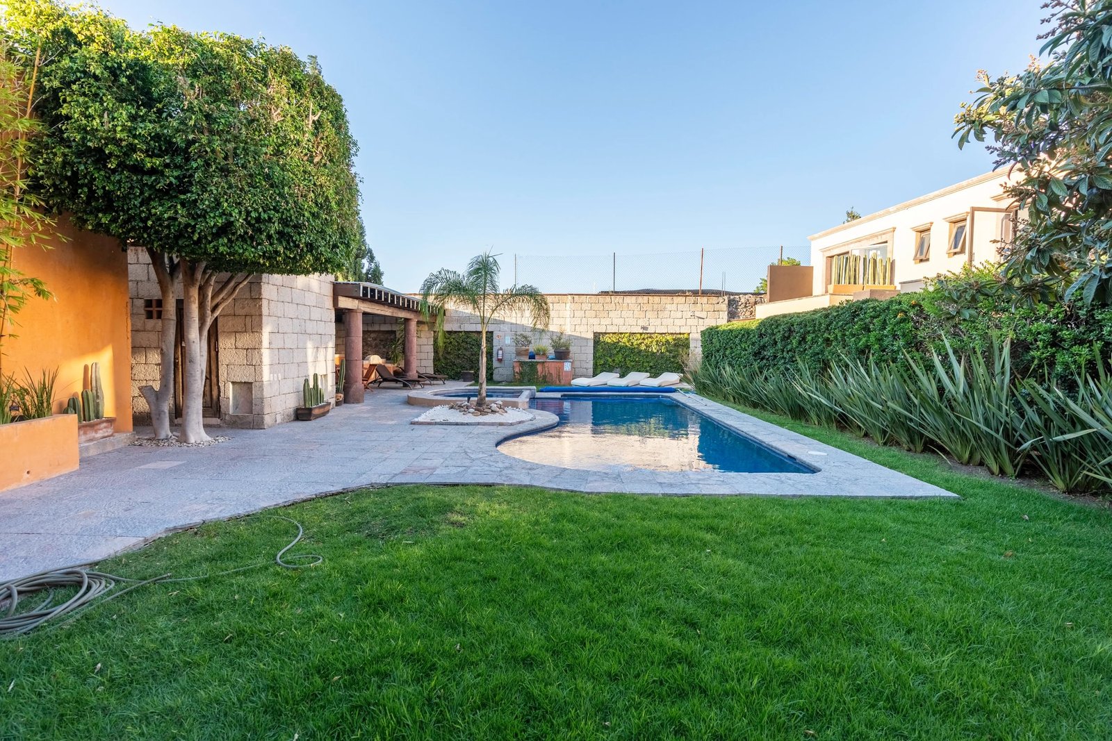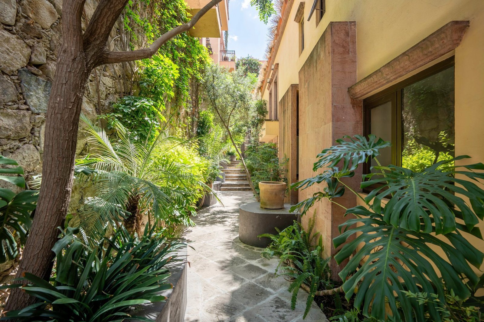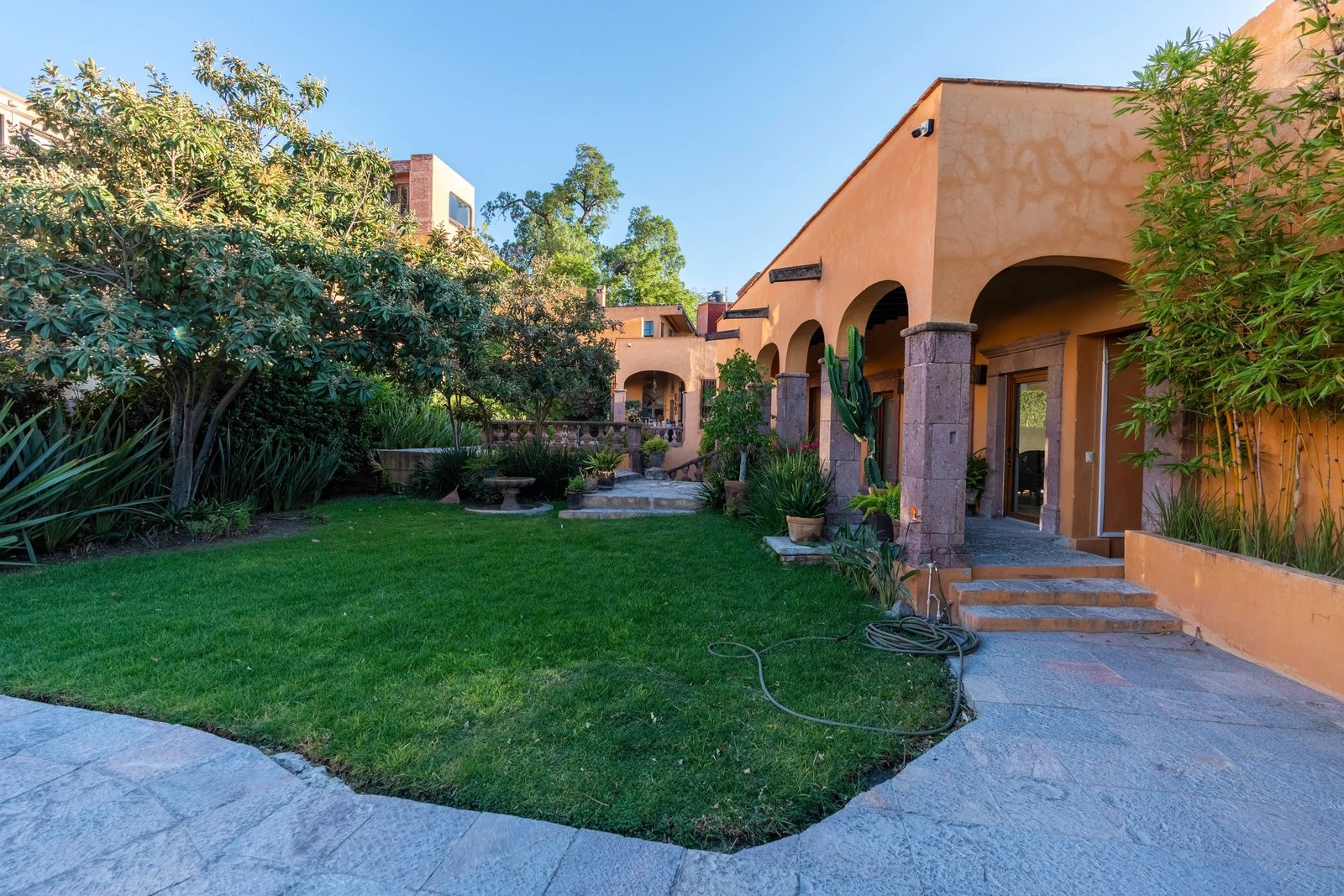 Our property is located right in the heart of San Miguel in a small private community of Los Arcangeles, just a few minutes away from some of the most famous gems of the city, La Parroquia de San Miguel Arcángel and Plaza Allende, the pink limestone gothic church and a symbol of the city.
