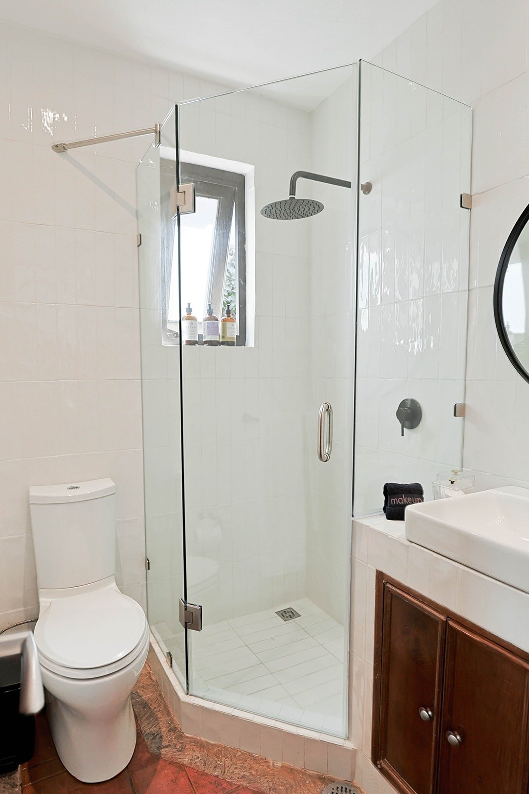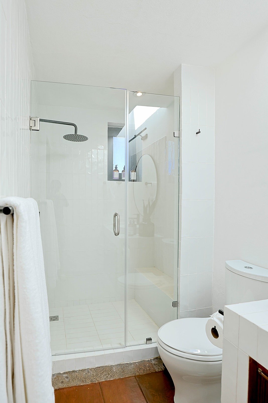 - Wide clearance to shower and toilet